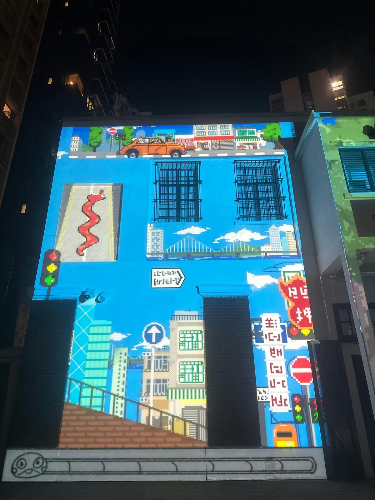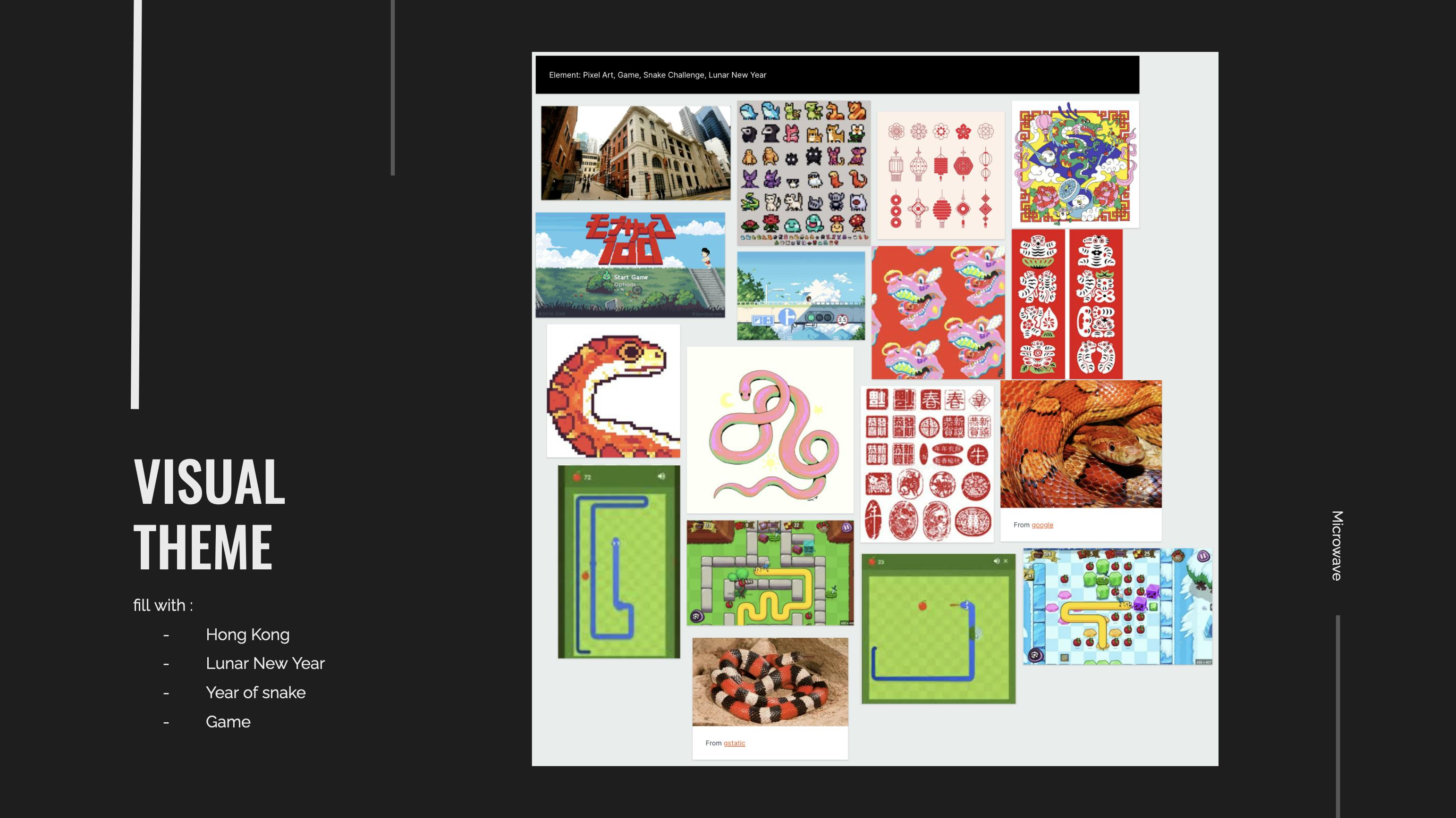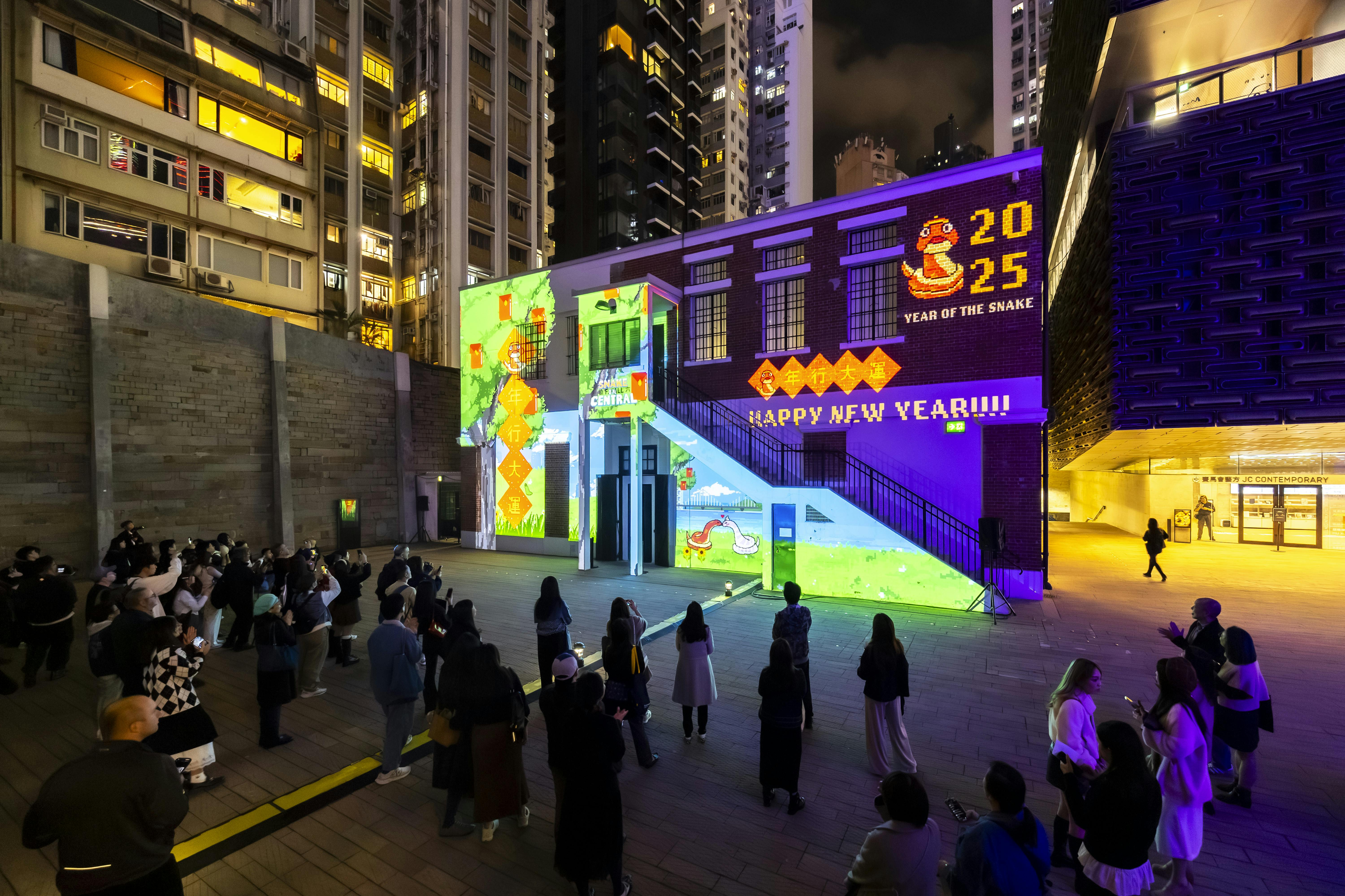 Snake in Central is an immersive art installation that draws on the symbolism of the Year of the Snake. It narrates the thrilling journey of a young man snake racing through Central to rescue his girlfriend from a thief. The animation combines playful pixel art with festive New Year elements, creating an engaging visual experience. Projected onto a large wall in F-hall, the design must adapt to the unique architectural features of the space, merging animation and environment in a compelling way. This project challenges traditional boundaries, offering a rich narrative and visual celebration.